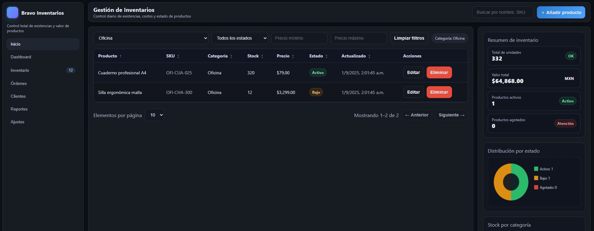 - Sistemas de inventarios.